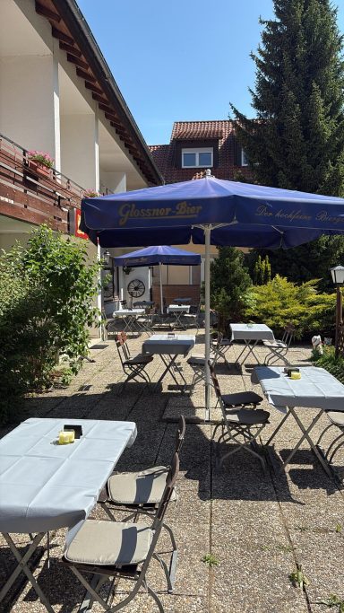Genießen Sie den Abend in unserem Biergarten direkt vor der Tür.